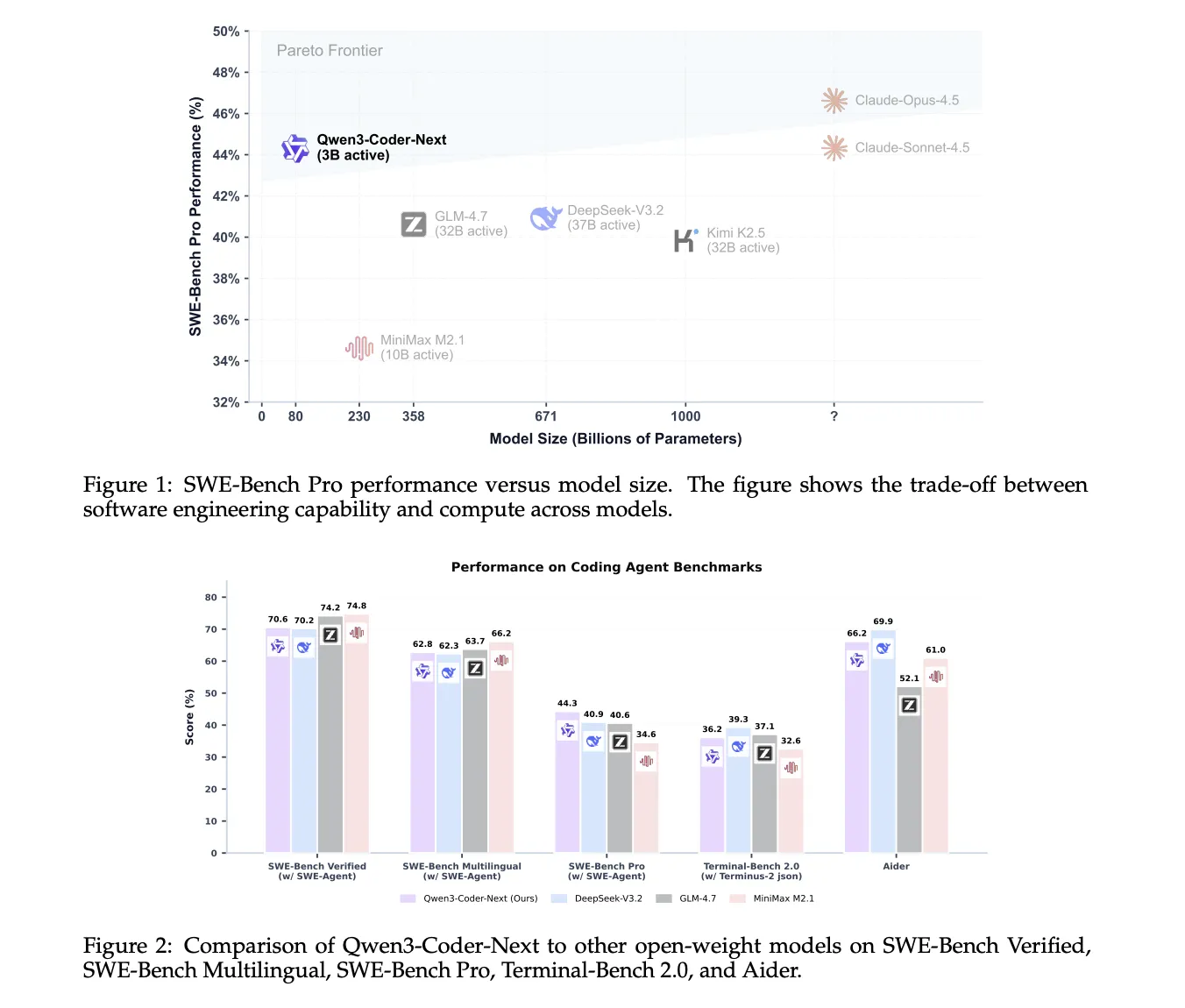 Такой подход, который разработчики называют «A3B» (Active 3B), создаёт уникальный баланс: модель обладает «эрудицией» и возможностями крупной нейросети, но сохраняет скорость и стоимость инференса на уровне компактных решений. По заявлению создателей, Qwen3-Coder-Next демонстрирует производительность, сопоставимую с моделями, у которых число активных параметров в 10–20 раз выше.