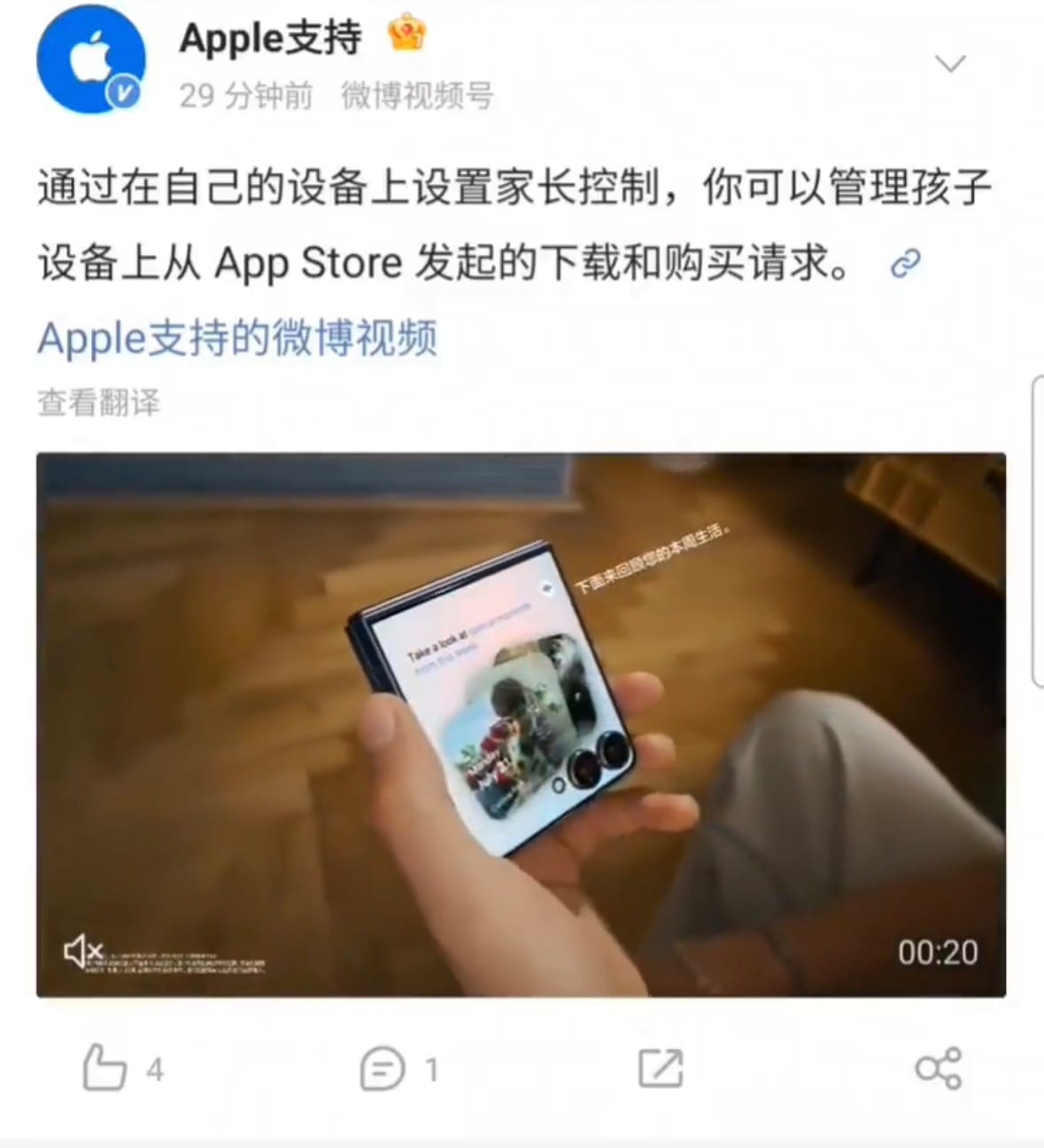 Аккаунт PhoneArt X опубликовал видео, в котором продемонстрировал, как официальный Weibo‑профиль Apple Support вместо собственного ролика вставил промо-материал складного устройства от Samsung.