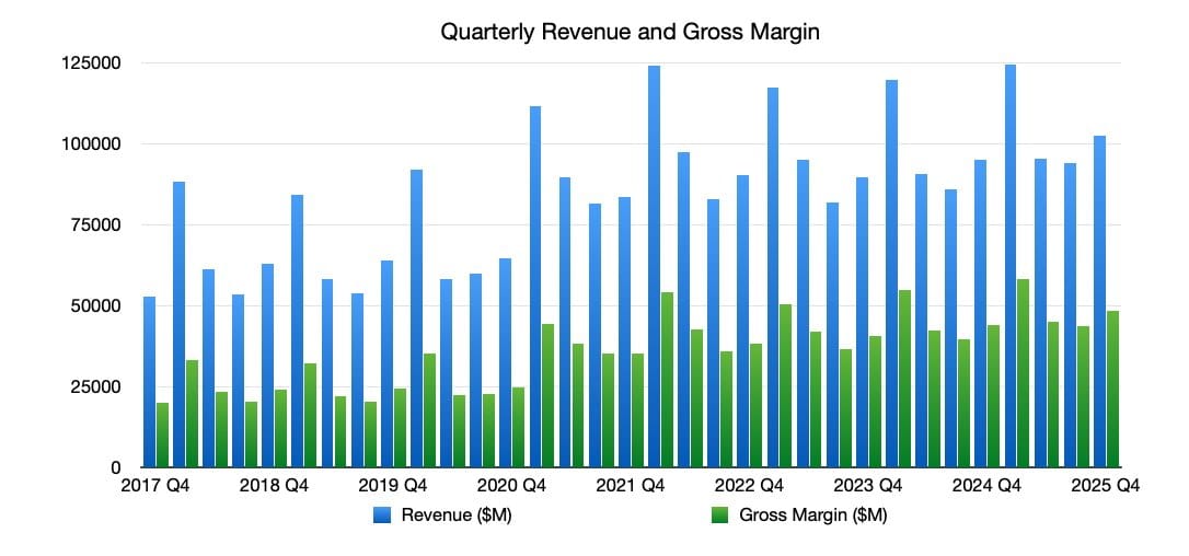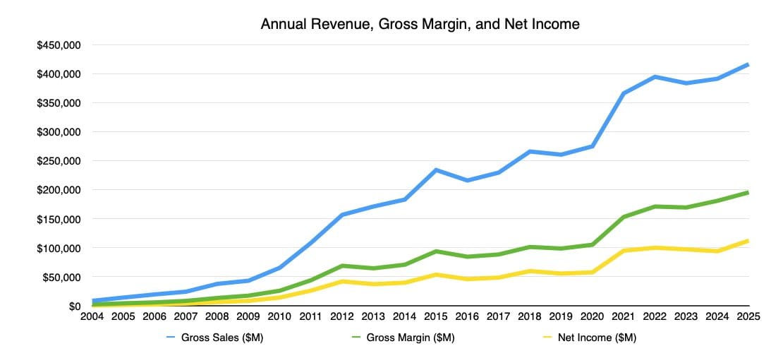 Apple завершила финансовый год исключительно прибыльно. Четвёртый квартал стал первым, который получил пользу от недавних запусков продуктов — iPhone 17 и iPhone Air, однако полный эффект от этих премьер проявится в стандартно мощном первом квартале 2026 финансового года.