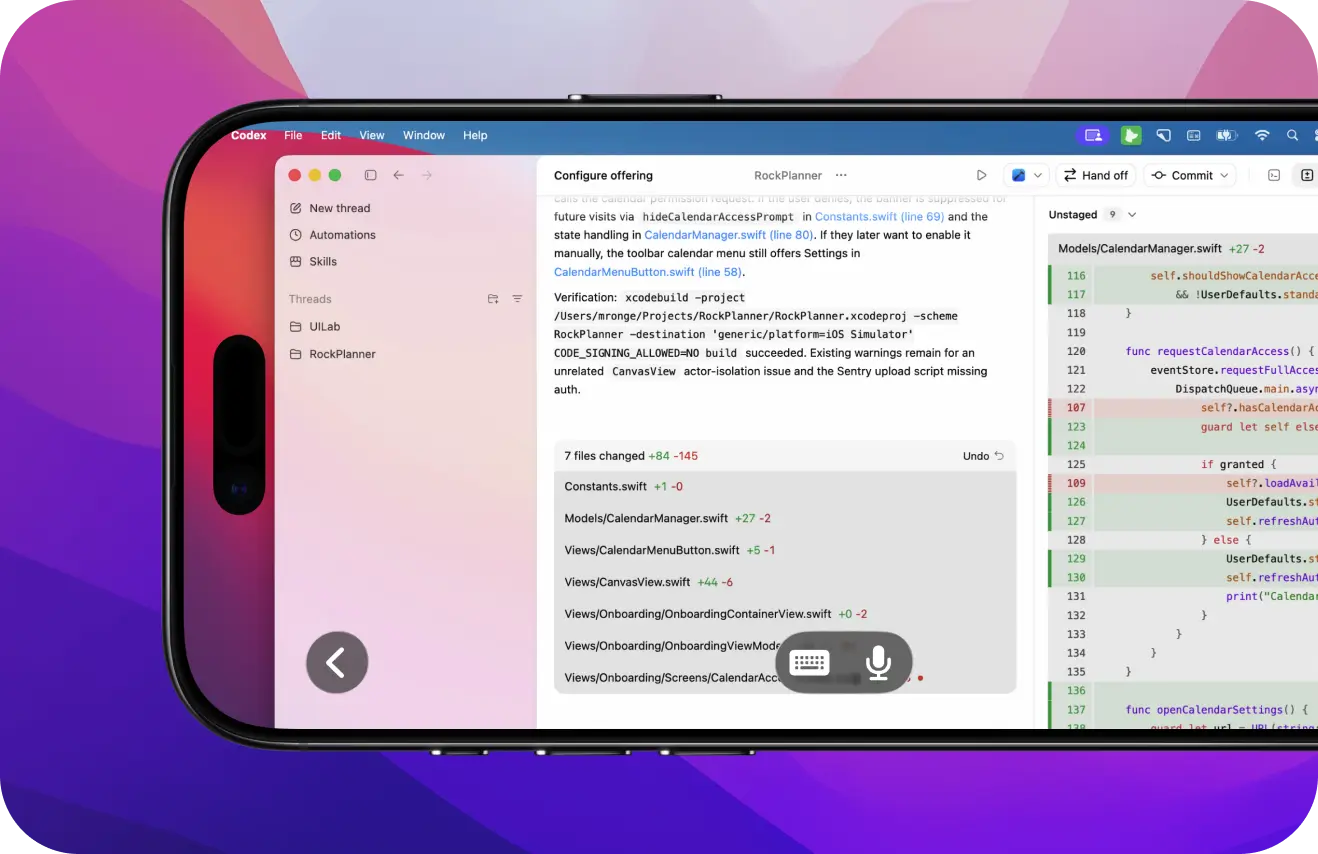 Ключевой особенностью Workbench стала адаптация под современные рабочие процессы, связанные с нейросетями. Разработчики приводят вполне жизненный сценарий: пользователю нужно удалённо проверить, как справляются с автономными задачами запущенные на его Mac ИИ-агенты, пока он сам находится вдали от компьютера. Для подобных задач предусмотрен не только традиционный ввод текста с поддержкой «горячих клавиш», но и голосовое управление, позволяющее диктовать промпты и команды напрямую с мобильного гаджета.