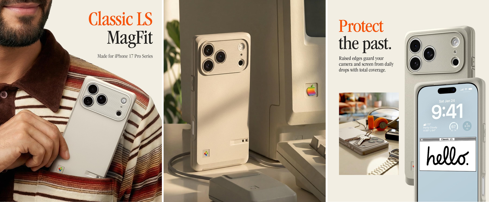 Ностальгия по эпохе первых «Макинтошей» добралась до iPhone 17 Pro: компания Spigen представила чехол Classic LS, стилизованный под легендарный Macintosh 128K образца 1984 года. Производитель прямо называет это «оммажем» оригинальному компьютеру и обещает, что аксессуар переносит его узнаваемый силуэт и настроение на современный смартфон.