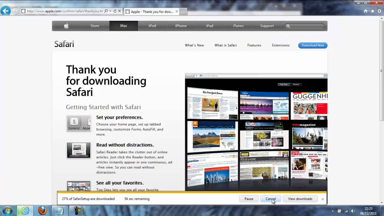 Apple анонсирует Safari 3, как самый скоростной и простой в использовании веб-браузер, работающий в два раза быстрее, чем Internet Explorer, и в 1,6 раза быстрее, чем Firefox. Он функционировал до 2012 года, но никогда не был очень популярным на Windows.