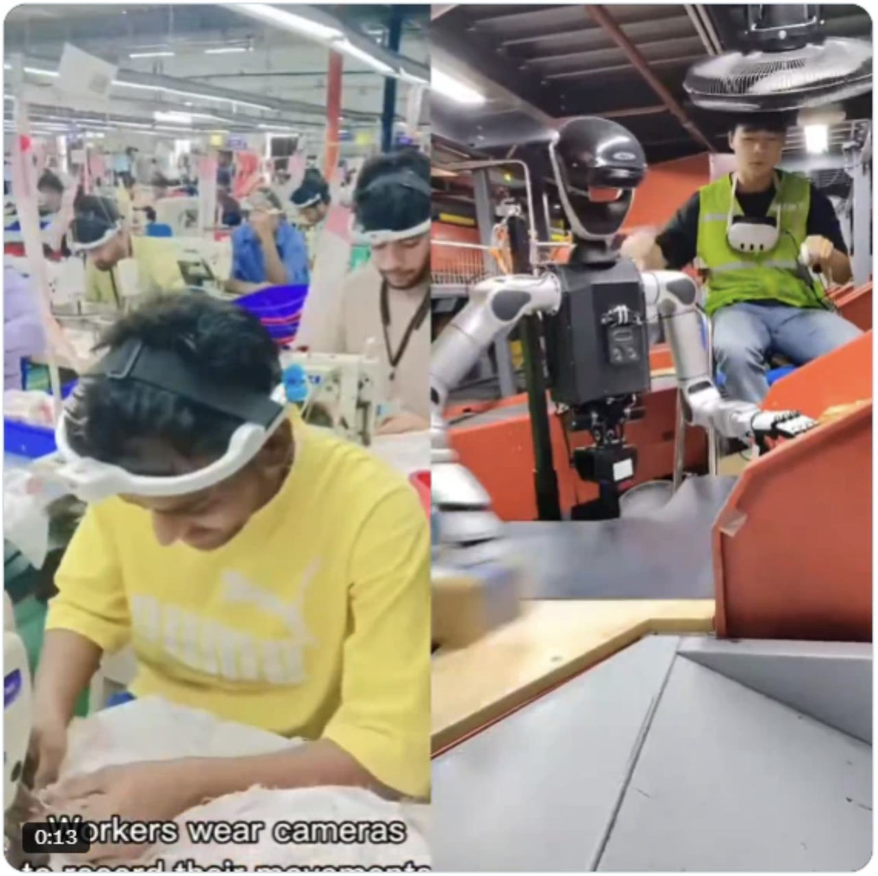На этом фоне в соцсетях сложилась доминирующая версия: рабочим выдают камеры, чтобы фиксировать их работу и использовать эти данные для обучения ИИ‑роботов, которые в перспективе смогут выполнять те же операции – от стёжки ткани до координации движений рук.