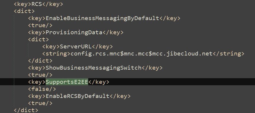 В iOS 26.3 beta 2 нашли новый параметр в операторских настройках, позволяющий включать или отключать сквозное шифрование (E2EE) для RCS-сообщений. Этот флаг заметил энтузиаст Tiino‑X83, изучив содержимое прошивки и сопоставив конфигурации операторов.