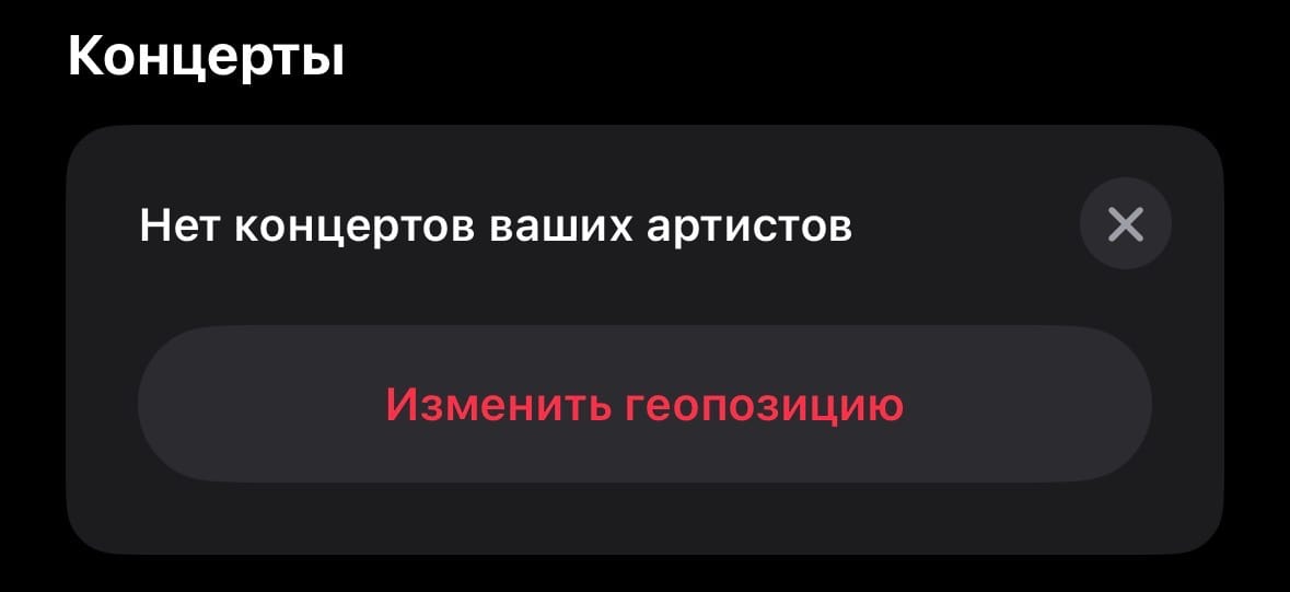 - Поиск концертов: В приложении появился раздел «Найти концерты поблизости», который отслеживает гастрольные графики артистов из вашей медиатеки и предлагает билеты на ближайшие выступления.