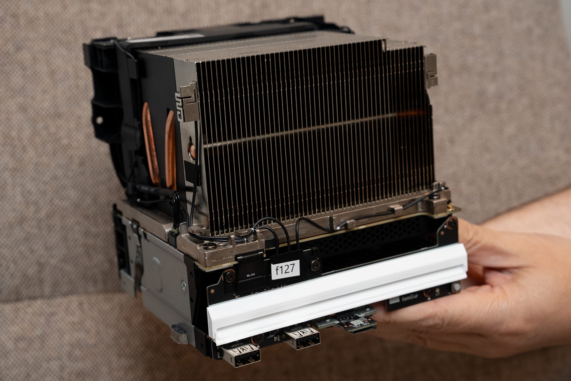 Как Valve удалось уместить мощность уровня PS5 в корпус объёмом всего 3,8 литра, что примерно вдвое меньше PS5, да ещё и с внутренним блоком питания? Когда журналисту передали разобранную Steam Machine, ответ стал очевиден: внутри почти нет пустого пространства.