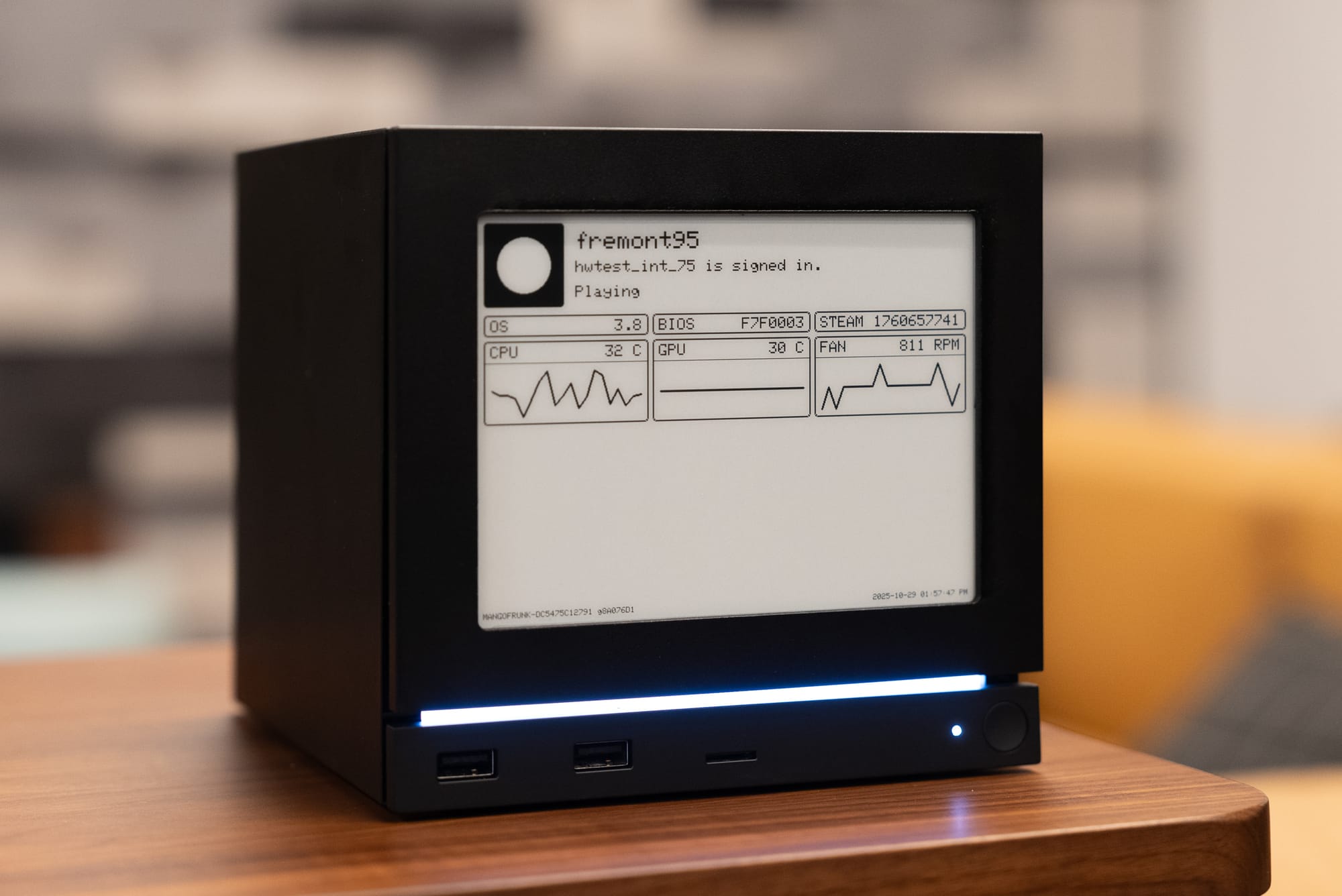Под панелью также находится настраиваемая RGB-полоса, которую планируют превратить в индикатор прогресса загрузок и обновлений.