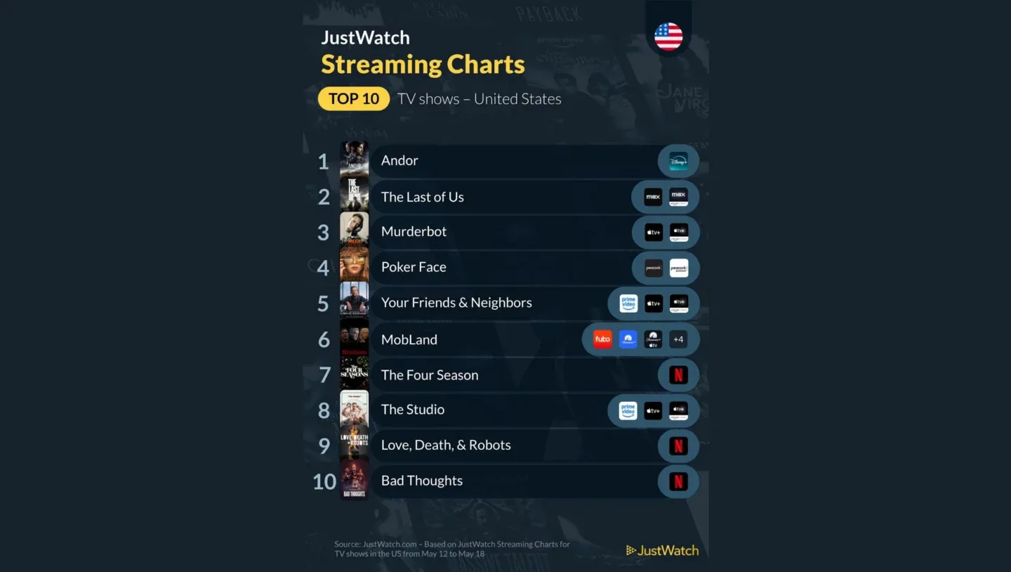 Apple, как и большинство стриминговых платформ, не публикует точные цифры просмотров, поэтому данные таких сервисов, как JustWatch и Reelgood, остаются основным ориентиром по популярности.