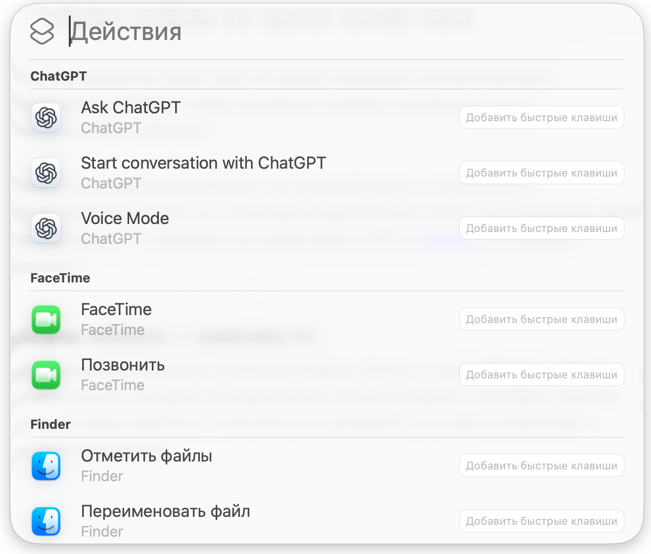 Вкладка «Действия» позволяет выполнять базовые действия прямо из Spotlight. Например:
