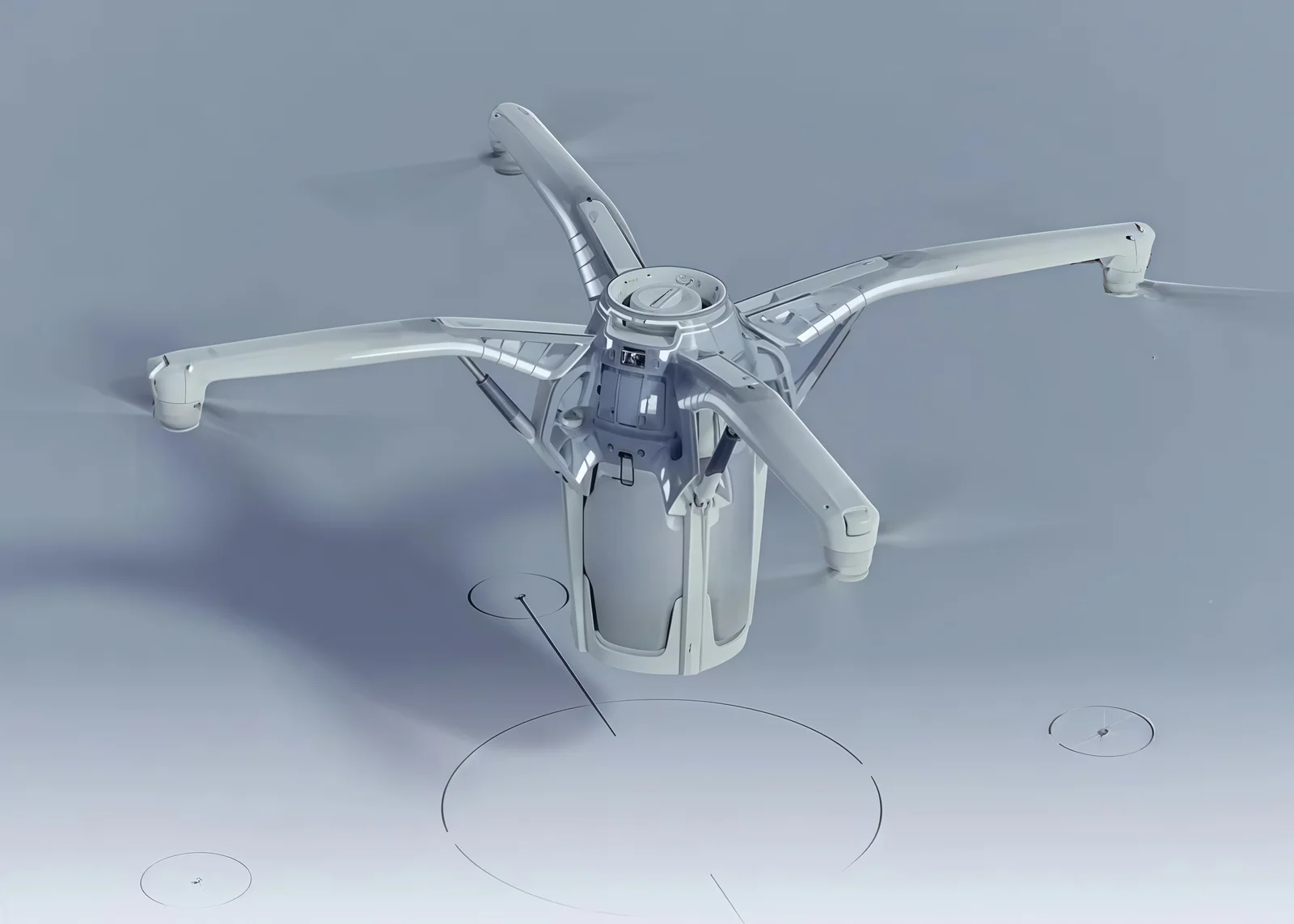 Устройство оснащено четырьмя складными пропеллерами и специальными отсеками для груза. Дрон способен работать в двух режимах в зависимости от объёма заказа: