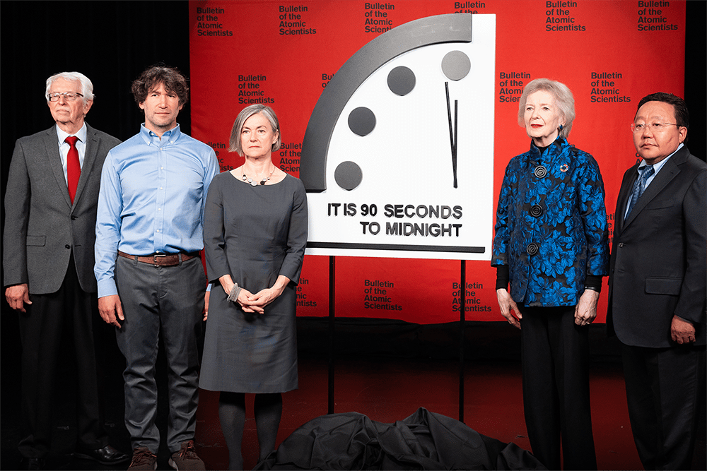 28 января 2025 года Bulletin of the Atomic Scientists объявил, что часы Судного дня (Doomsday Clock) остаются на отметке 90 секунд до полуночи — рекордно близко к символическому концу человечества. Среди факторов названы ядерная угроза, ИИ, климатический кризис и войны.