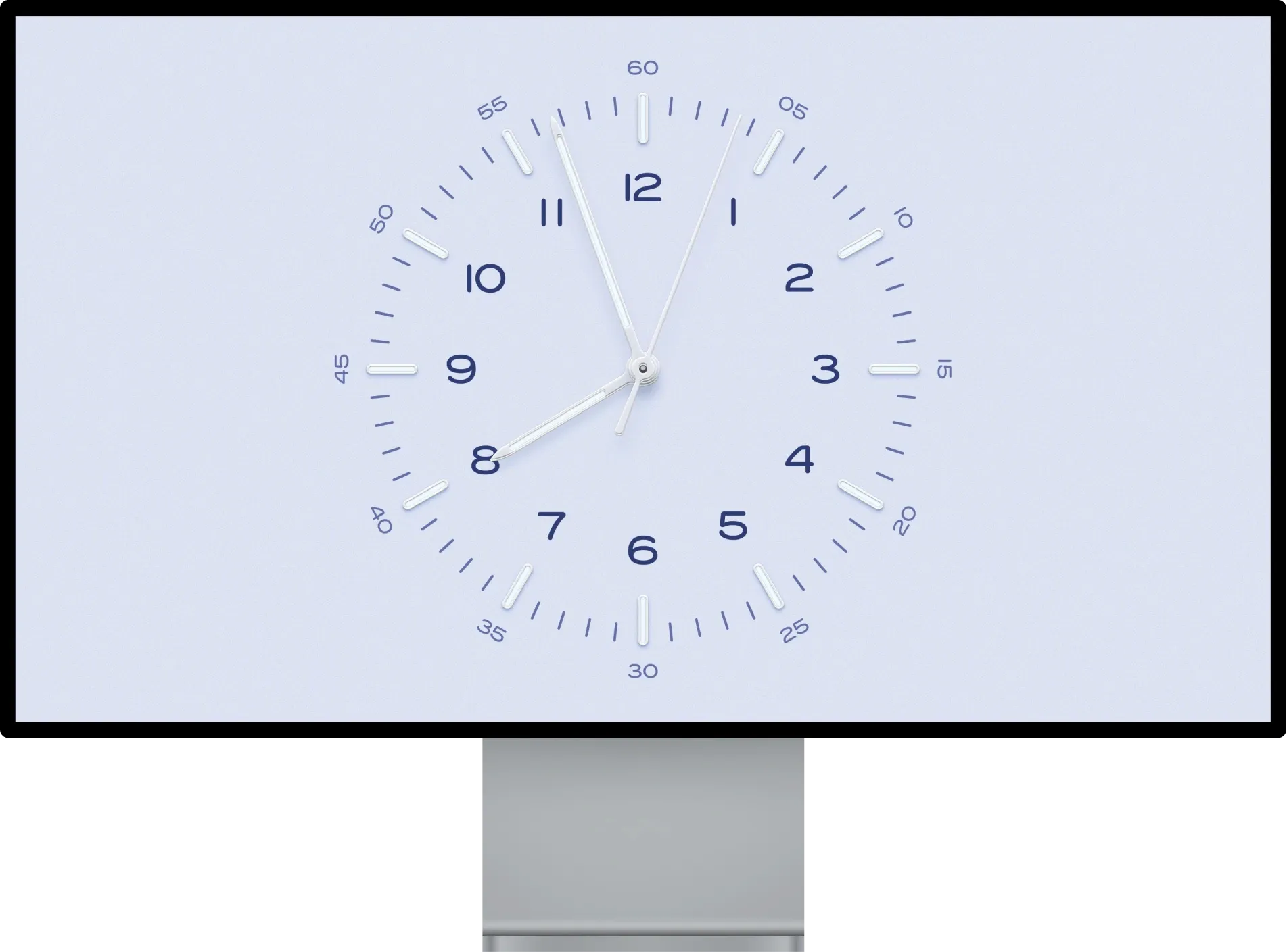 Bauhaus Clock, ещё один популярный экранный заставщик для Mac, вдохновлён минималистичным стилем школы Баухаус и отображает цифровые часы с частотой 28 800 импульсов в час, соответствующей ритму классических механических часов. Заставка работает плавно и поддерживает несколько языков, включая русский, французский и немецкий. Для установки требуется macOS 14 Sonoma.