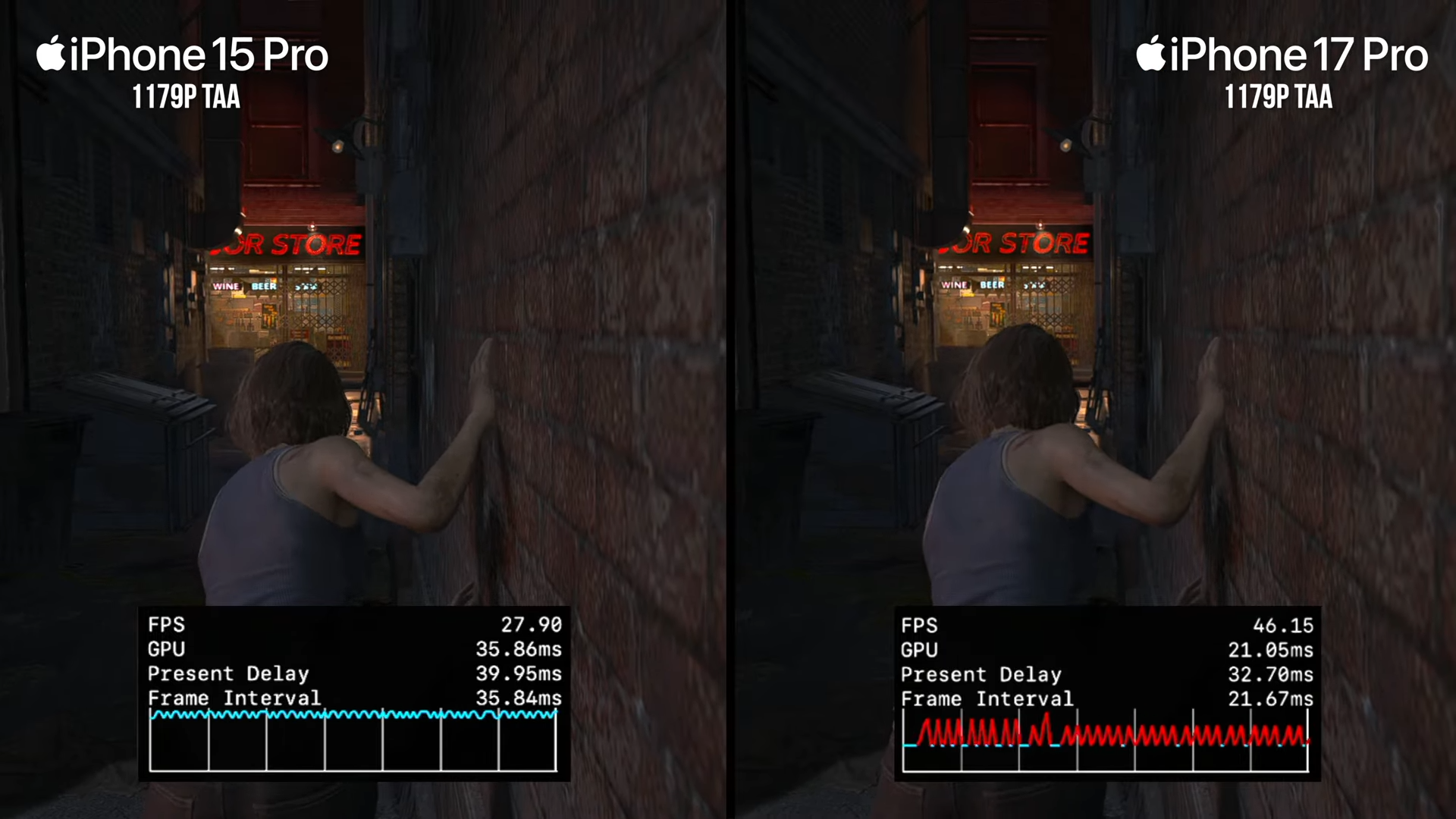 Основная часть обзора была посвящена производительности в реальных проектах. Специалисты использовали адаптированные под iOS версии известных ААА-тайтлов, которые ранее выходили на старших платформах. Для оценки применялось сравнение с результатами позапрошлогоднего iPhone 15 Pro.