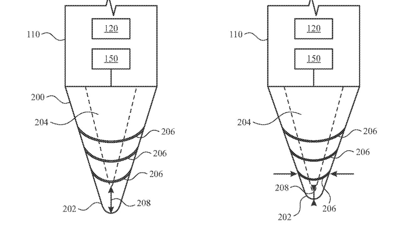 В документе под названием «Стилус с регулируемыми характеристиками» (Stylus with adjustable features) описывается гаджет, способный радикально менять тактильные ощущения от использования. Главная инновация заключается в управлении габаритами, жёсткостью и силой трения наконечника. Для этого инженеры Apple предлагают использовать специальную магнитореологическую жидкость между стержнем и корпусом: под воздействием магнитного поля она сможет в реальном времени менять свою вязкость.