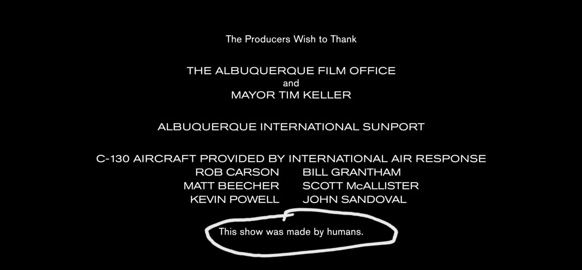 Ясно, что Гиллиган уделил этому вопросу намного больше внимания, чем среднестатистический участник интернет-дискуссий (которые сейчас спорят об «ИИ» с таким же энтузиазмом, как некогда о «компьютерной графике»), он намеренно включил в титры своего сериала едкий комментарий по поводу этой технологии.